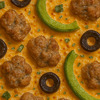Italian sausage, Mozzarela cheese, Pizza sauce, Bell pepper, Black olive