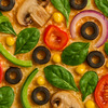 Bell pepper, Red onion, Black olives, Mushroom, Pea, Mozzarela cheese